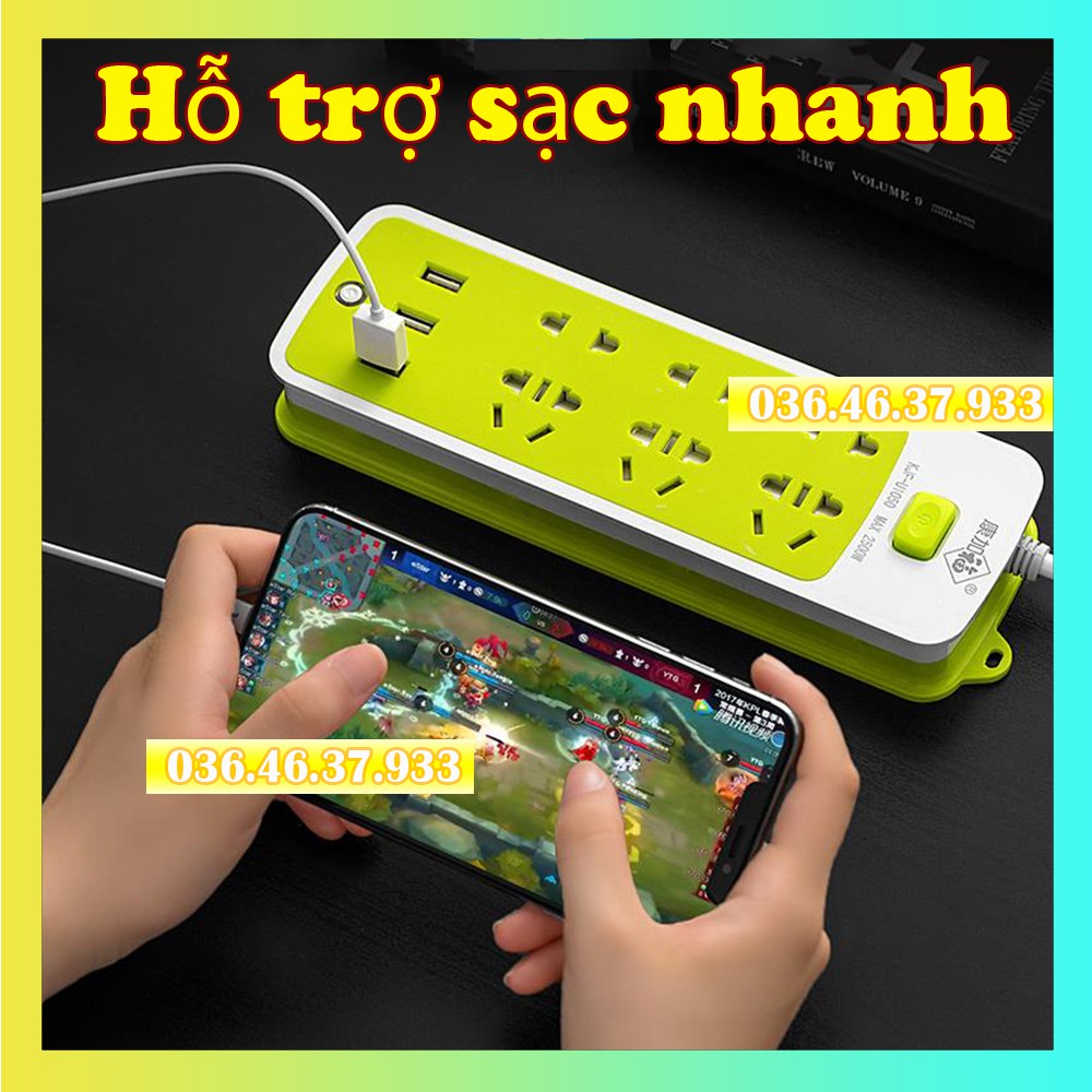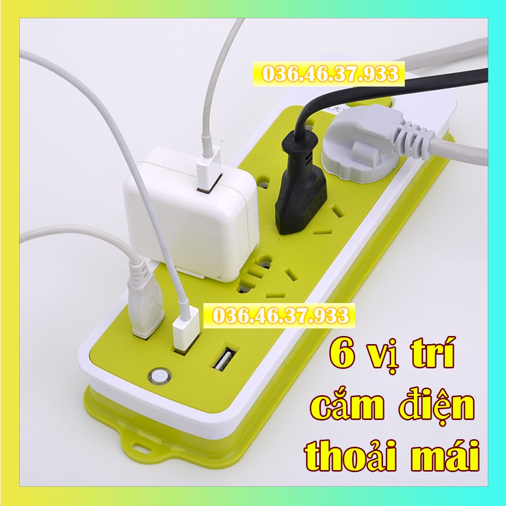 Ổ cắm điện đa năng có cổng USB sạc nhanh thông minh dây dài 1,5m thiết kế 6 lỗ