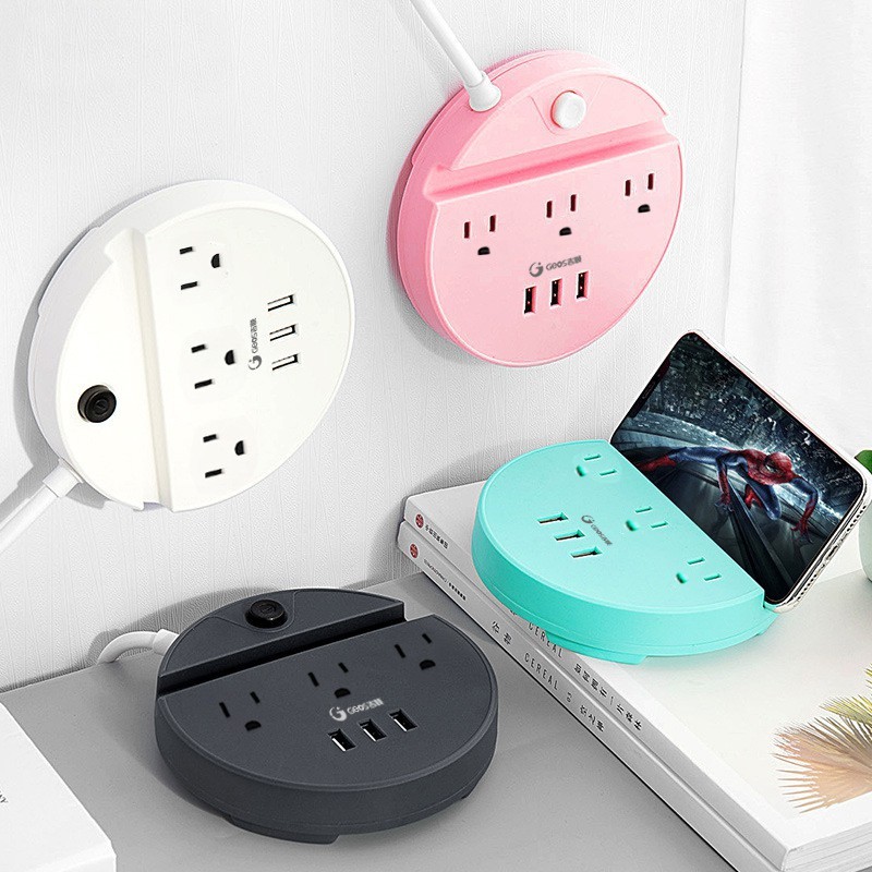 Giới thiệu Ổ Cắm Điện Đa Năng Có Cổng USB Kiêm Giá Đỡ Điện Thoại Hình Tròn Sáng Tạo Dây 1,5m