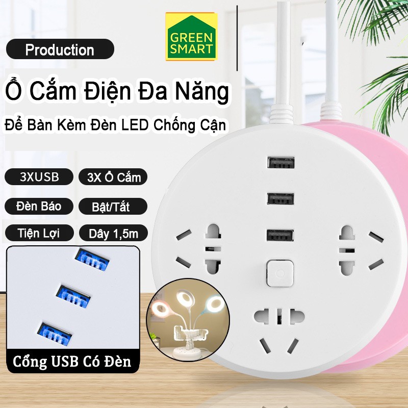 Ổ cắm điện đa năng có cổng USB - Ổ cắm điện kèm đèn báo khi có điện siêu bền và thiết kế an toàn