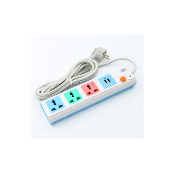 - Thiết kế 3 lỗ cắm 3 chân và 2 cổng USB tiêu chuẩn, tiết kiệm diện tích và phù hợp với mọi loại phích cắm có trên thị trường sẽ giúp bạn cung cấp điện cho nhiều thiết bị cùng lúc như đèn bàn, quạt máy, điện thoại... một cách tiện lợi. Khoảng cách giữa các ổ cắm rộng, giúp cắm được các loại phích bản rộng khác nhau.