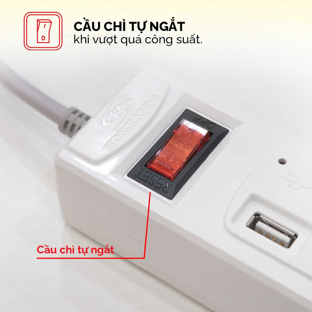 Giới thiệu Ổ cắm điện đa năng Có USB Honjianda Mã 01 - công tắc Reset an toàn chống quá tải