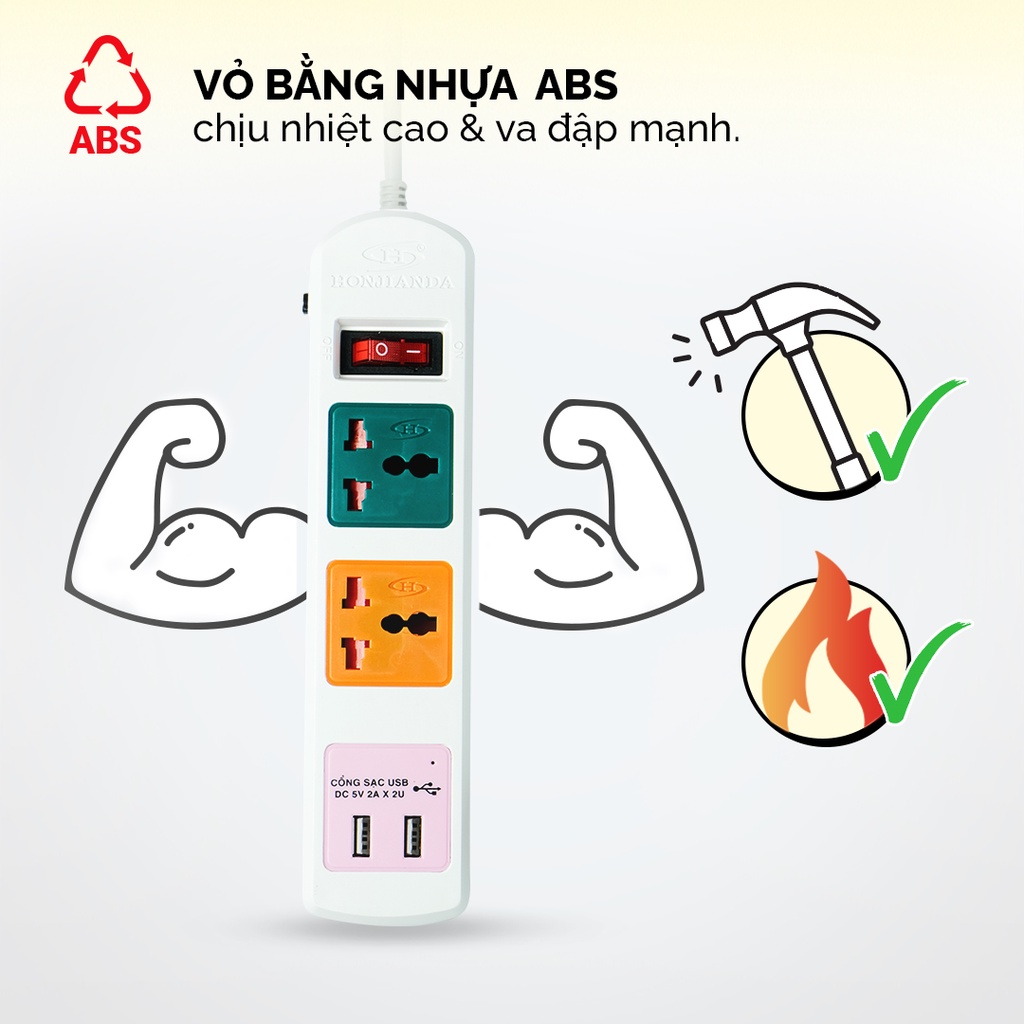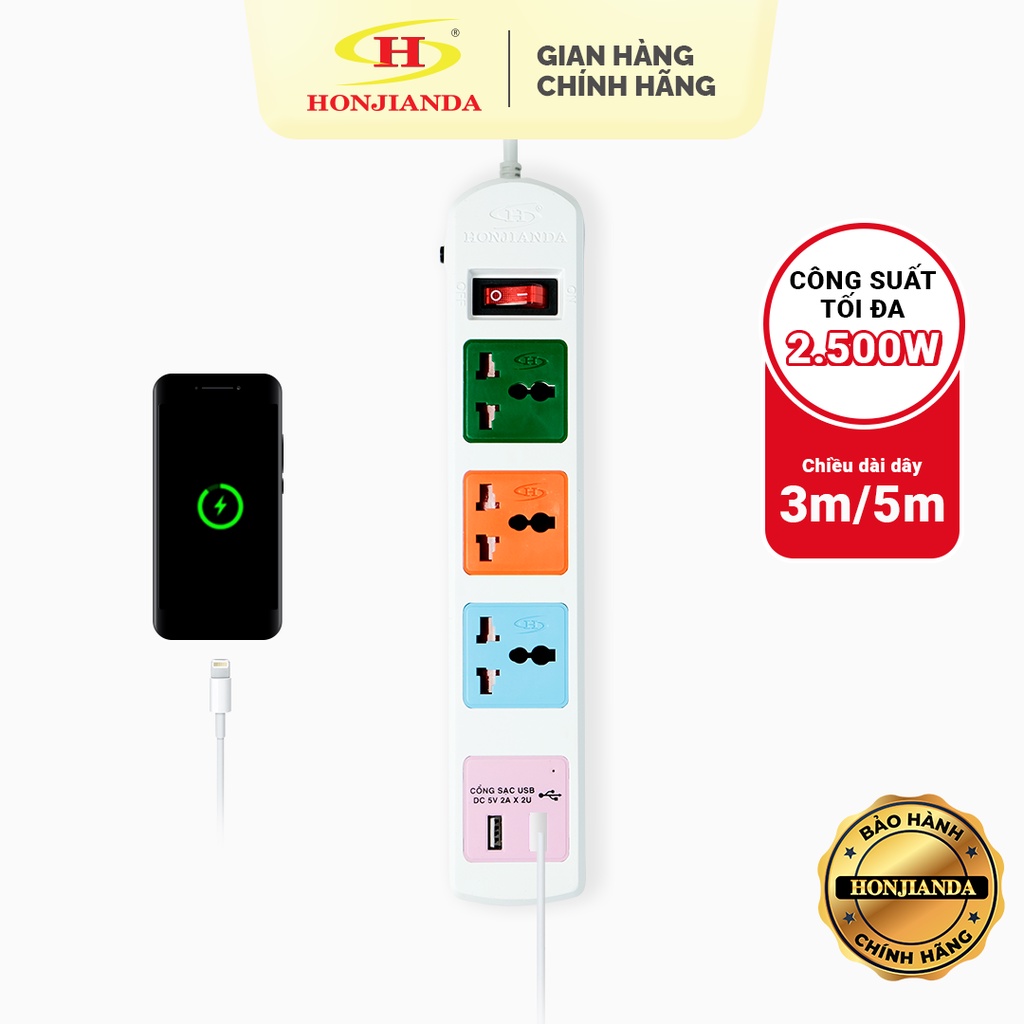 Ổ cắm điện đa năng có USB Honjianda Mã 05 Dây 3m - an toàn chống quá tải