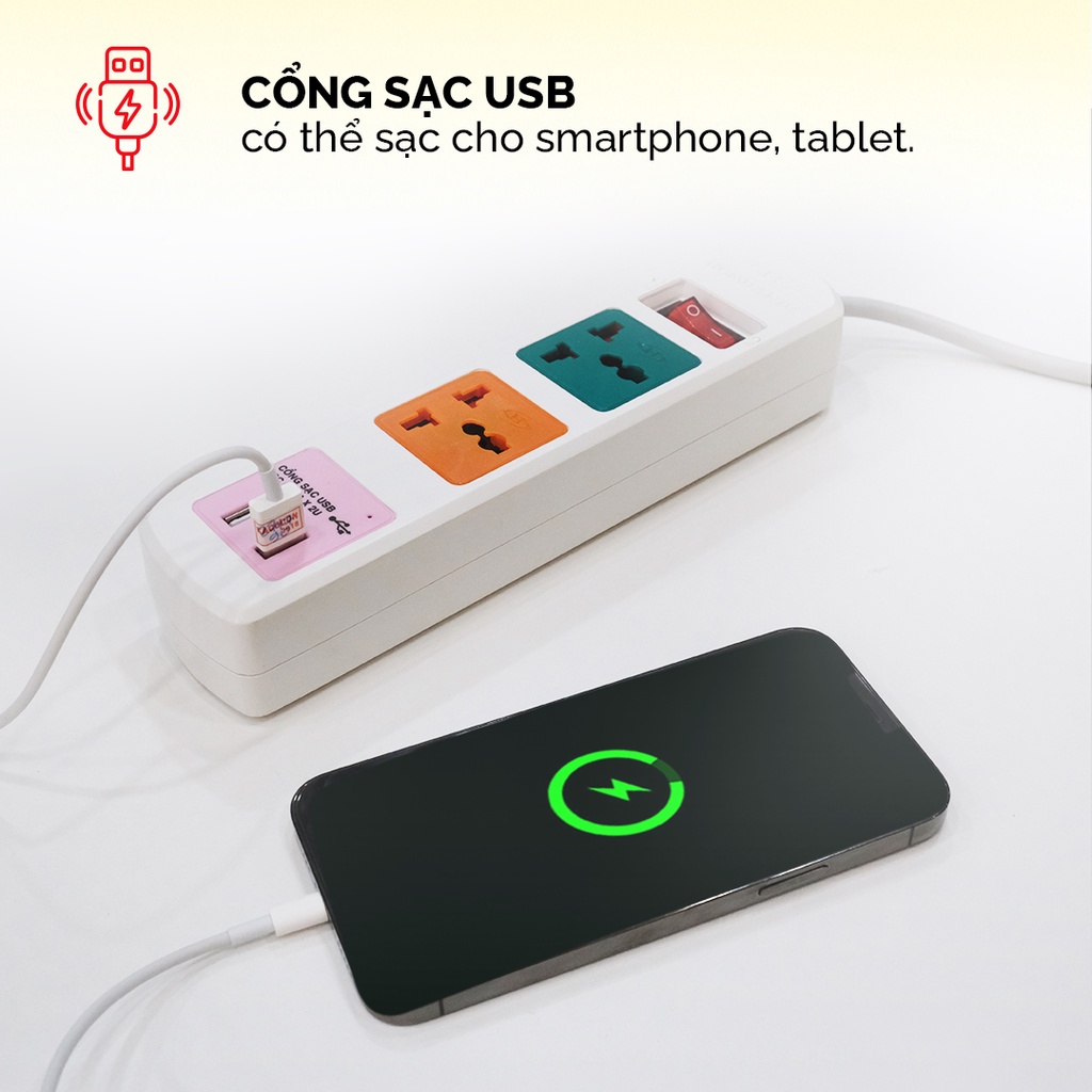 0544B-U: 3 lỗ cắm, có USB, 1 công tắc, công suất tối đa 2.500W