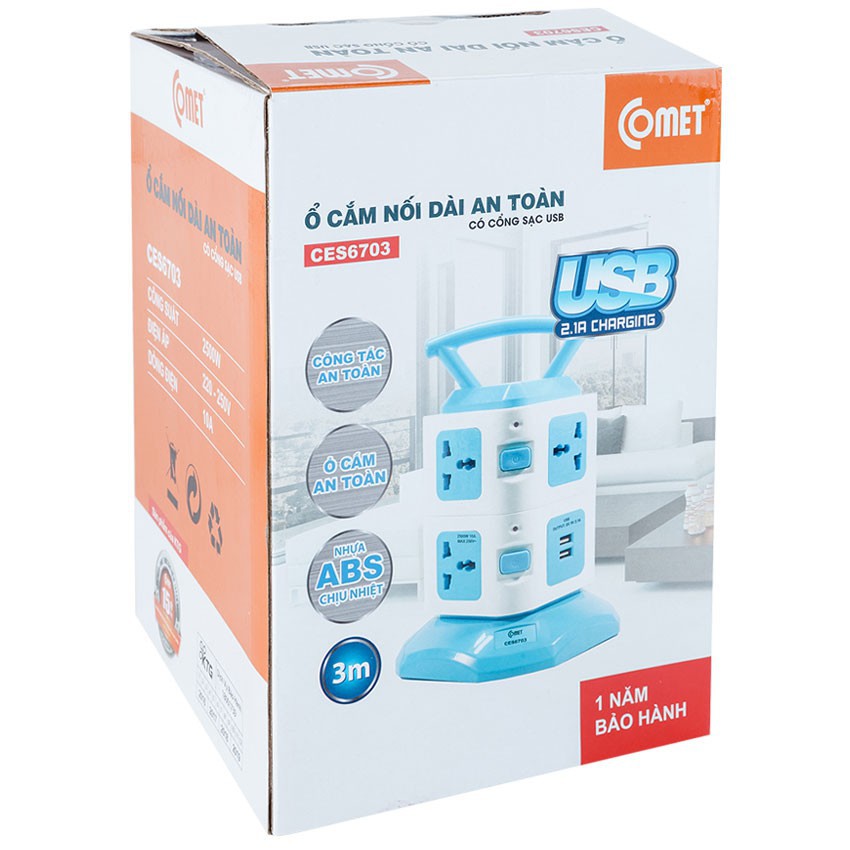 Nhà cửa & Đời sống > Dụng cụ & Thiết bị tiện ích > Dụng cụ > Khác || Ổ Cắm Điện đa năng COMET 2500W dây dài 3m, 7 lỗ cắm 3 chấu, 2 cổng sạc USB, CES6703Còn hàng