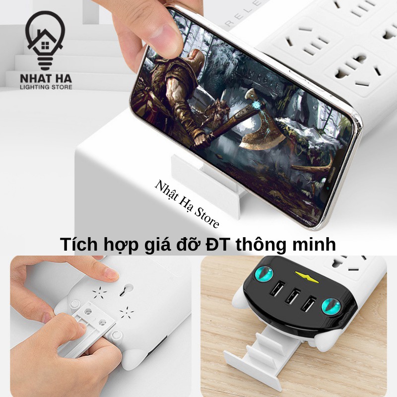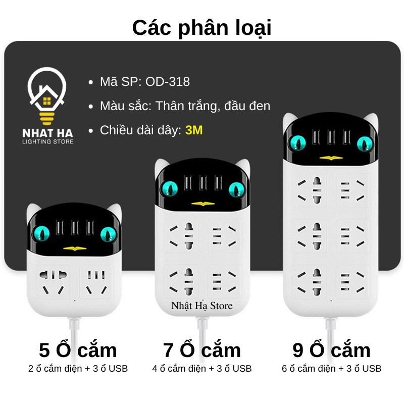 Thiết Bị Điện Gia Dụng > Mạch điện & Phụ tùng > Ổ cắm điện & Dây nối || Ổ Cắm Điện Đa Năng Dán Tường Hình Mèo Cute OD-318, 3 Cổng USB Chống Giật Thông Minh Dây Dài 3mCòn hàng