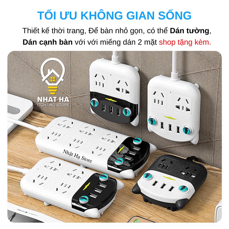 Ổ Cắm Điện Đa Năng Dán Tường Hình Mèo Cute OD-318, 3 Cổng USB Chống Giật Thông Minh Dây Dài 3m