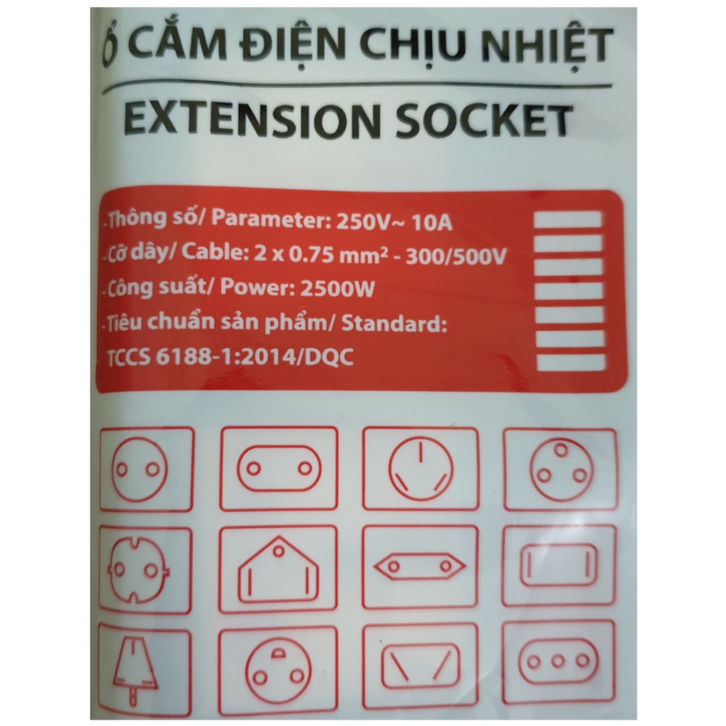 - Tổng công suất thiết kế: 10A (2000 Watt), tuy nhiên chỉ nên sử dụng tối đa khoảng 2000 Watt để đảm bảo độ bền và an toàn lâu dài cho ổ cắm.