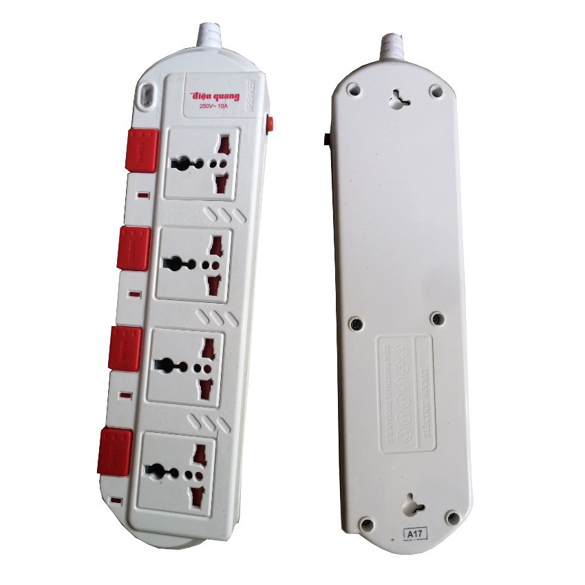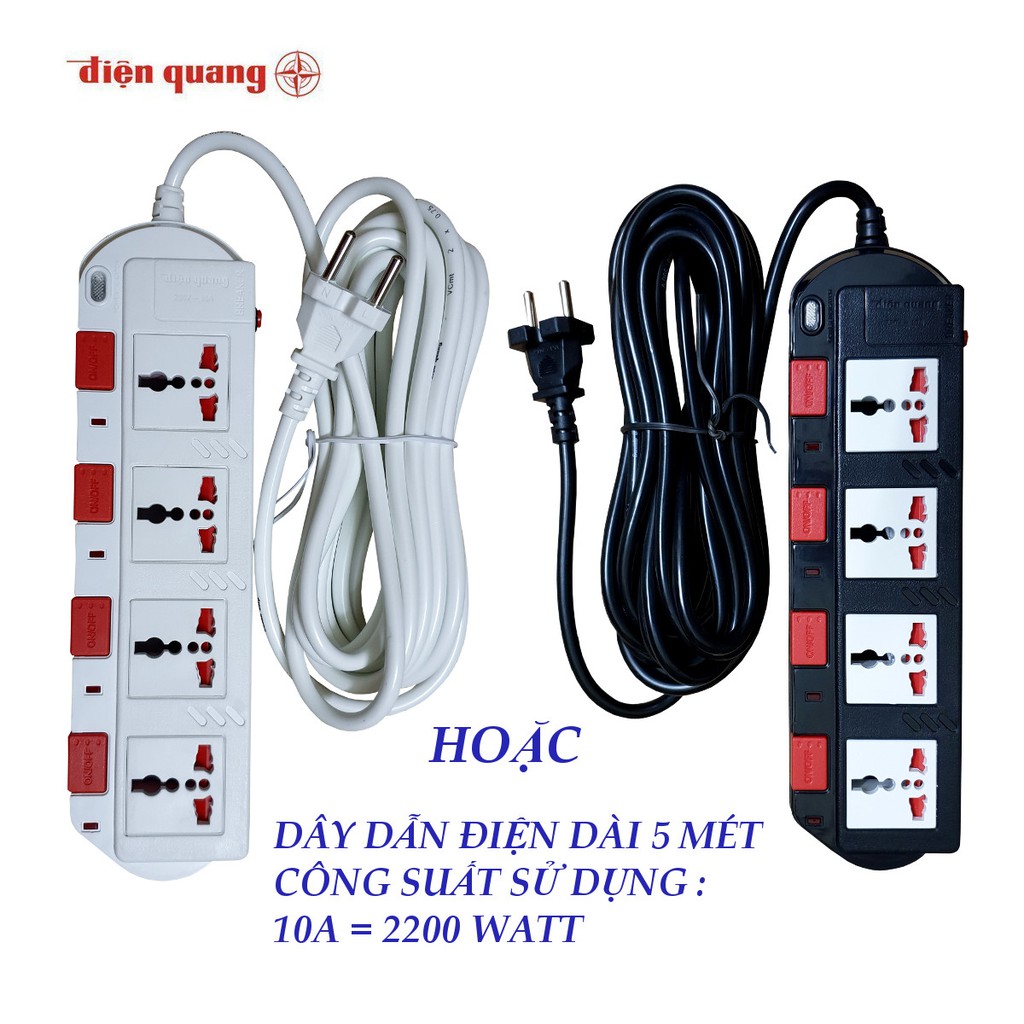 Thiết Bị Điện Gia Dụng > Mạch điện & Phụ tùng > Ổ cắm điện & Dây nối || Ổ cắm điện đa năng Điện quang 4 lỗ cắm 3 chấu 4 công tắc dây 5 mét công suất 2000 wattCòn hàng