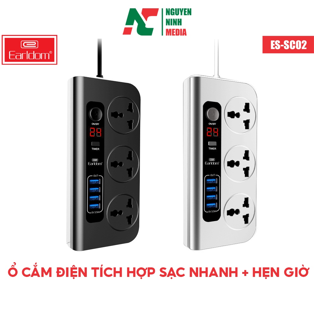 Thiết Bị Điện Gia Dụng > Mạch điện & Phụ tùng > Ổ cắm điện & Dây nối || Ổ Cắm Điện Đa Năng Earldom ES - SC02 Tích Hợp Nhiều Cổng Sạc + Hẹn Giờ Thông Minh - Hàng Chính HãngCòn hàng