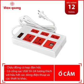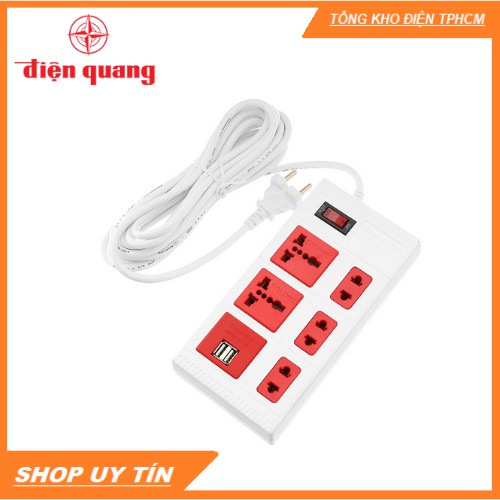 Thiết Bị Điện Gia Dụng > Mạch điện & Phụ tùng > Ổ cắm điện & Dây nối || Ổ Cắm Điện Đa Năng ECO Điện Quang, 5 Ổ Điện Chịu Tải 2500W Dây Nối 2-Mét Chống Cháy Cùng 2 Cổng USB Sạc Nhanh 5V-2.0ACòn hàng