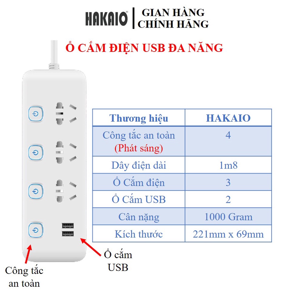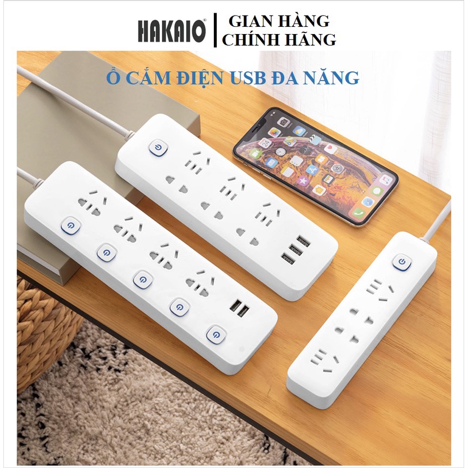Thiết Bị Điện Gia Dụng > Mạch điện & Phụ tùng > Ổ cắm điện & Dây nối || Ổ cắm điện đa năng HAKAIO thông minh Đèn LED và cổng USB 5v sạc nhanh chịu tải 2500W bảo hành 12 thángCòn hàng