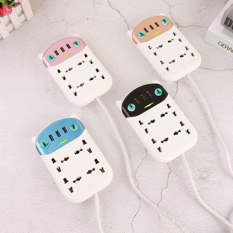 Ổ Cắm Điện Đa Năng Hình Mèo Có 3 Cổng USB Và 4 Chân Cắm Ổ Điện Chống Giật Dài 1.5m
