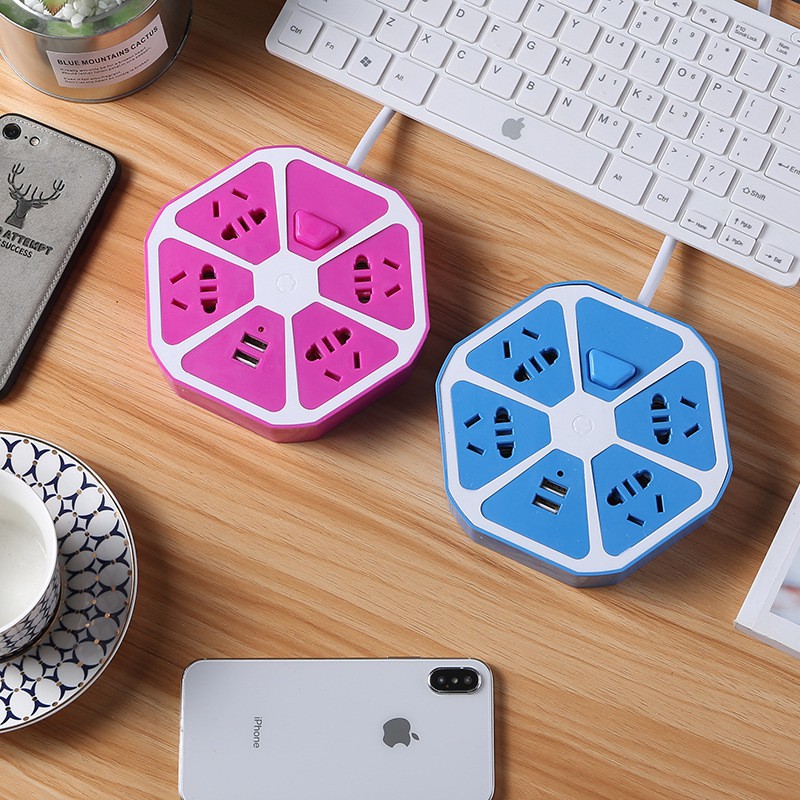 Thiết Bị Điện Gia Dụng > Mạch điện & Phụ tùng > Ổ cắm điện & Dây nối || Ổ CẮM ĐIỆN ĐA NĂNG HÌNH TRÁI CAM LỤC GIÁC NHIỀU MÀU CÓ CÔNG TẮC GỒM 4 LỖ CẮM ĐIỆN VÀ 2 CỔNG USB, PHÍCH CẮM ĐIỆN 2 CHẤUCòn hàng