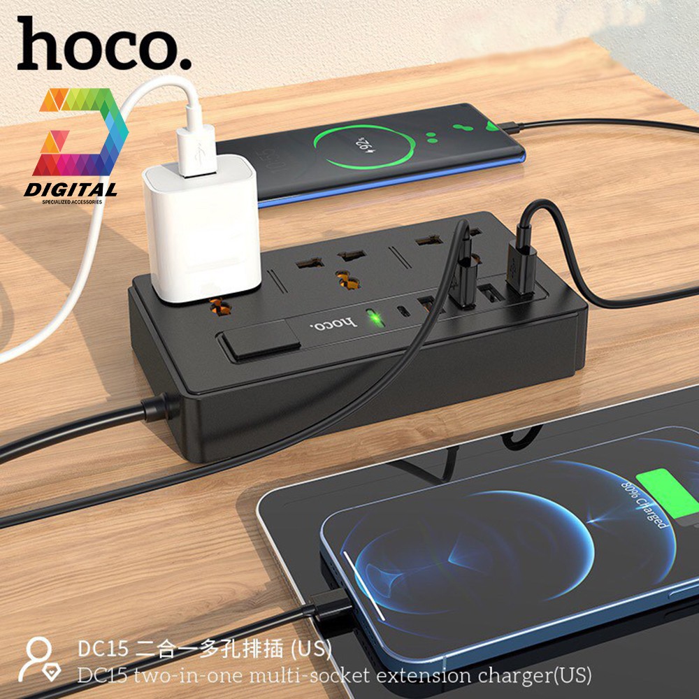 Nhà cửa & Đời sống > Dụng cụ & Thiết bị tiện ích > Dụng cụ > Khác || Ổ Cắm Điện Đa Năng Hoco DC15 Chính Hãng Có Cổng USB Thông MinhCòn hàng