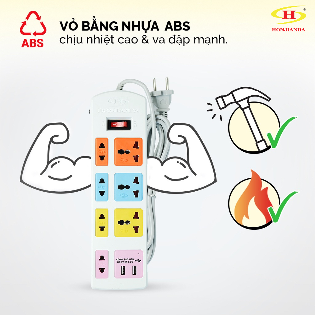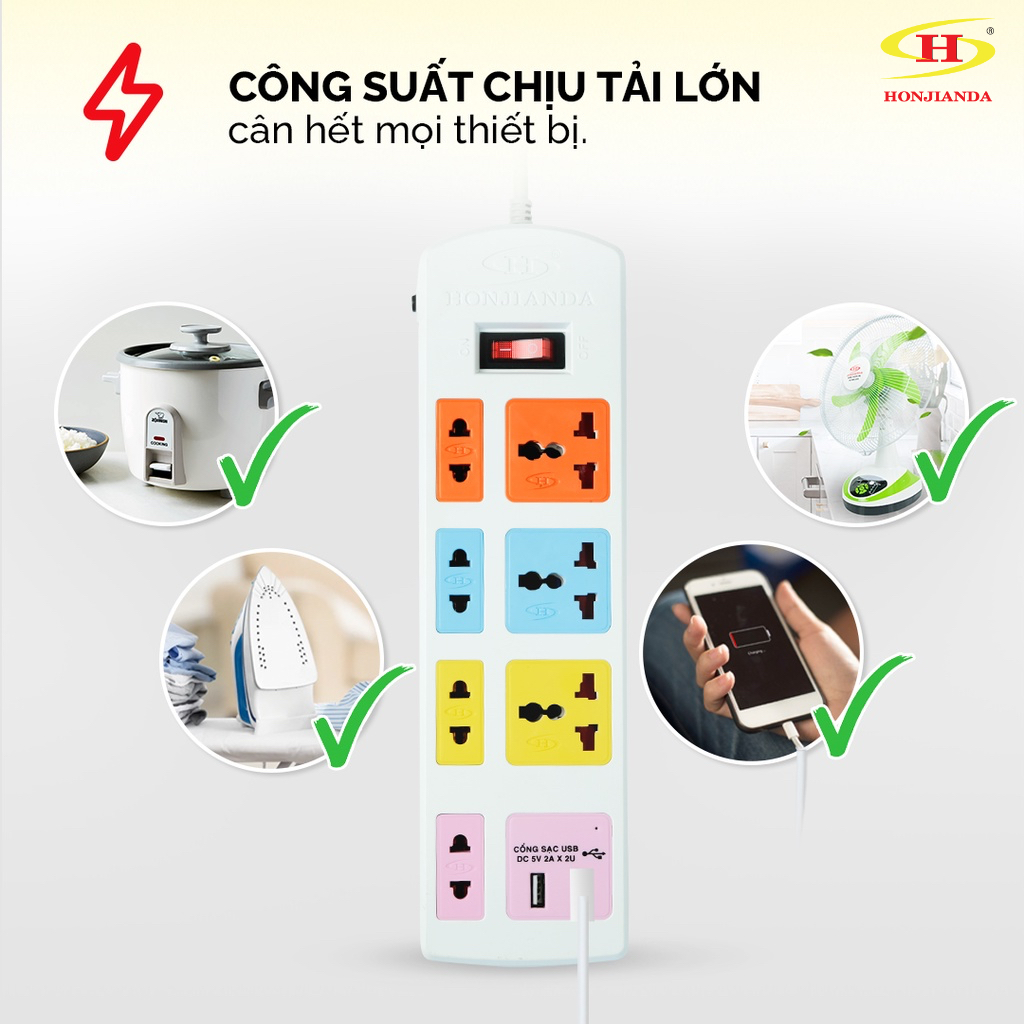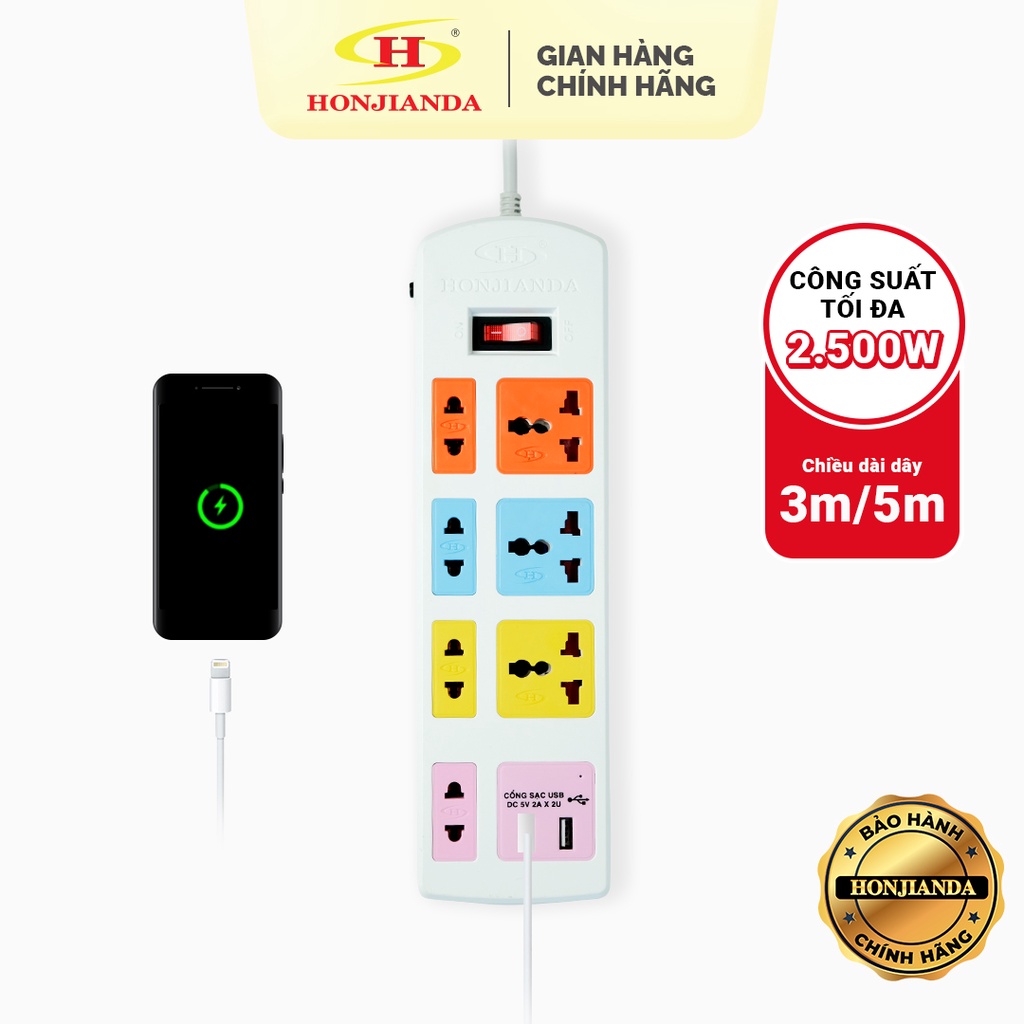Thiết Bị Điện Gia Dụng > Mạch điện & Phụ tùng > Ổ cắm điện & Dây nối || [Mã LIFEBMO44 giảm 15% đơn 99K] Ổ cắm điện đa năng Honjianda Có USB Mã 04 Dây 3m/5m - an toàn chống quá tảiCòn hàng