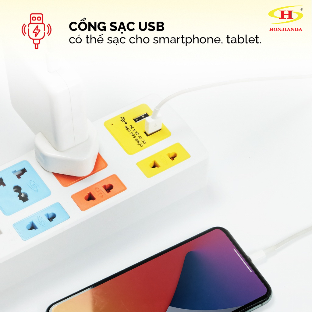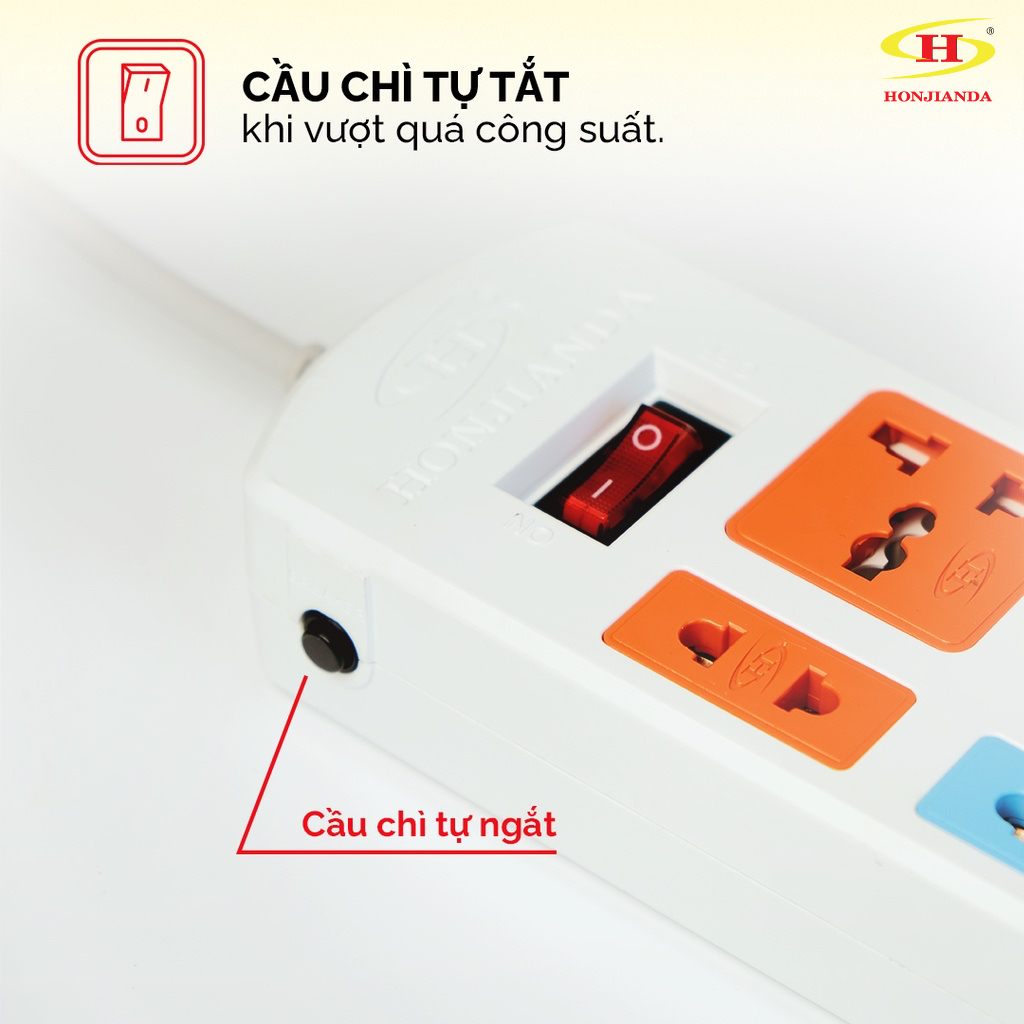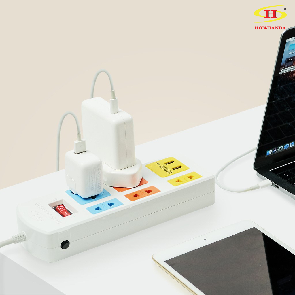 Giới thiệu Ổ cắm điện đa năng Honjianda Có USB Mã 04 Dây 3m/5m - an toàn chống quá tải