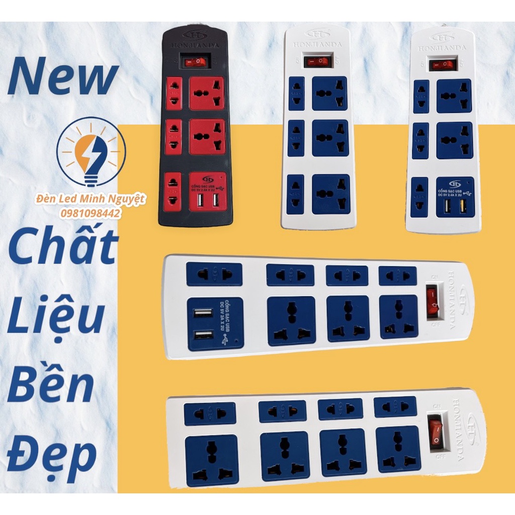 Thiết Bị Điện Gia Dụng > Mạch điện & Phụ tùng > Ổ cắm điện & Dây nối || Ổ Cắm Điện Đa Năng Honjianda Mã 04 6A/10A Có USB Dây 3m/5mCòn hàng