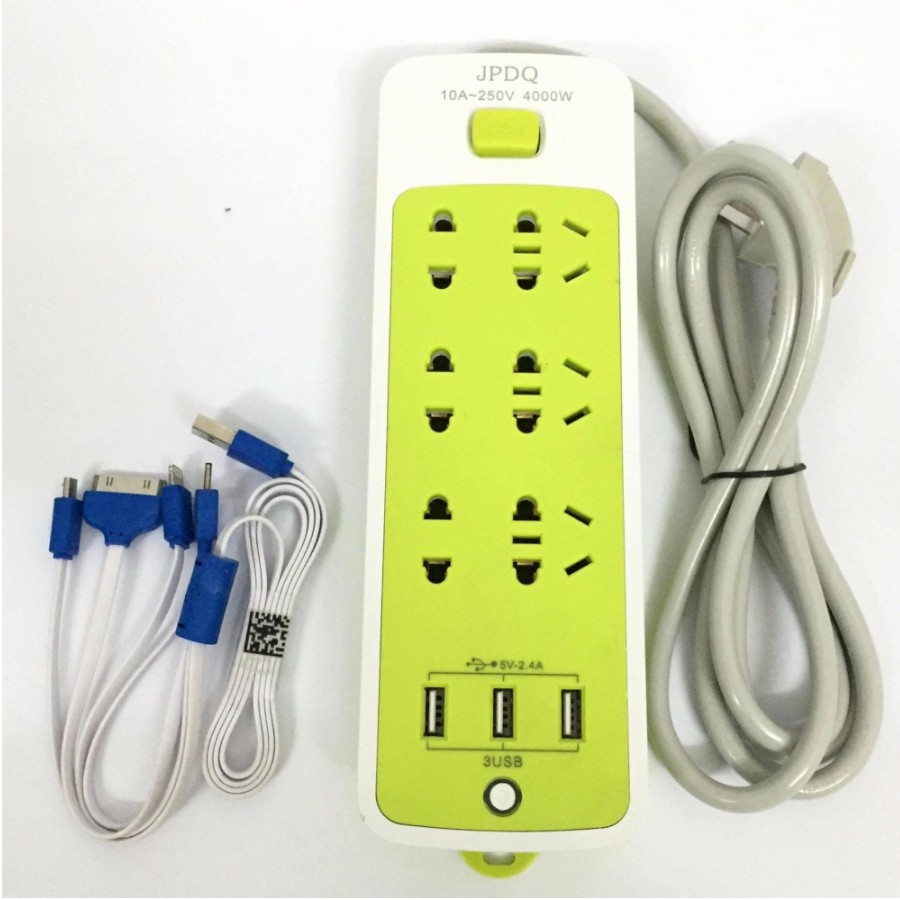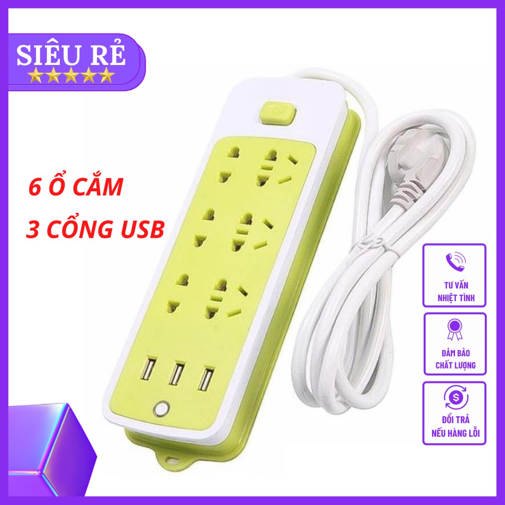 Thiết Bị Điện Gia Dụng > Mạch điện & Phụ tùng > Ổ cắm điện & Dây nối || Ổ Cắm Điện Đa Năng Kèm Cổng Sạc USB Màu Xanh Cho Gia Đình, 6 Cổng Cắm Và 3 Cổng USBCòn hàng