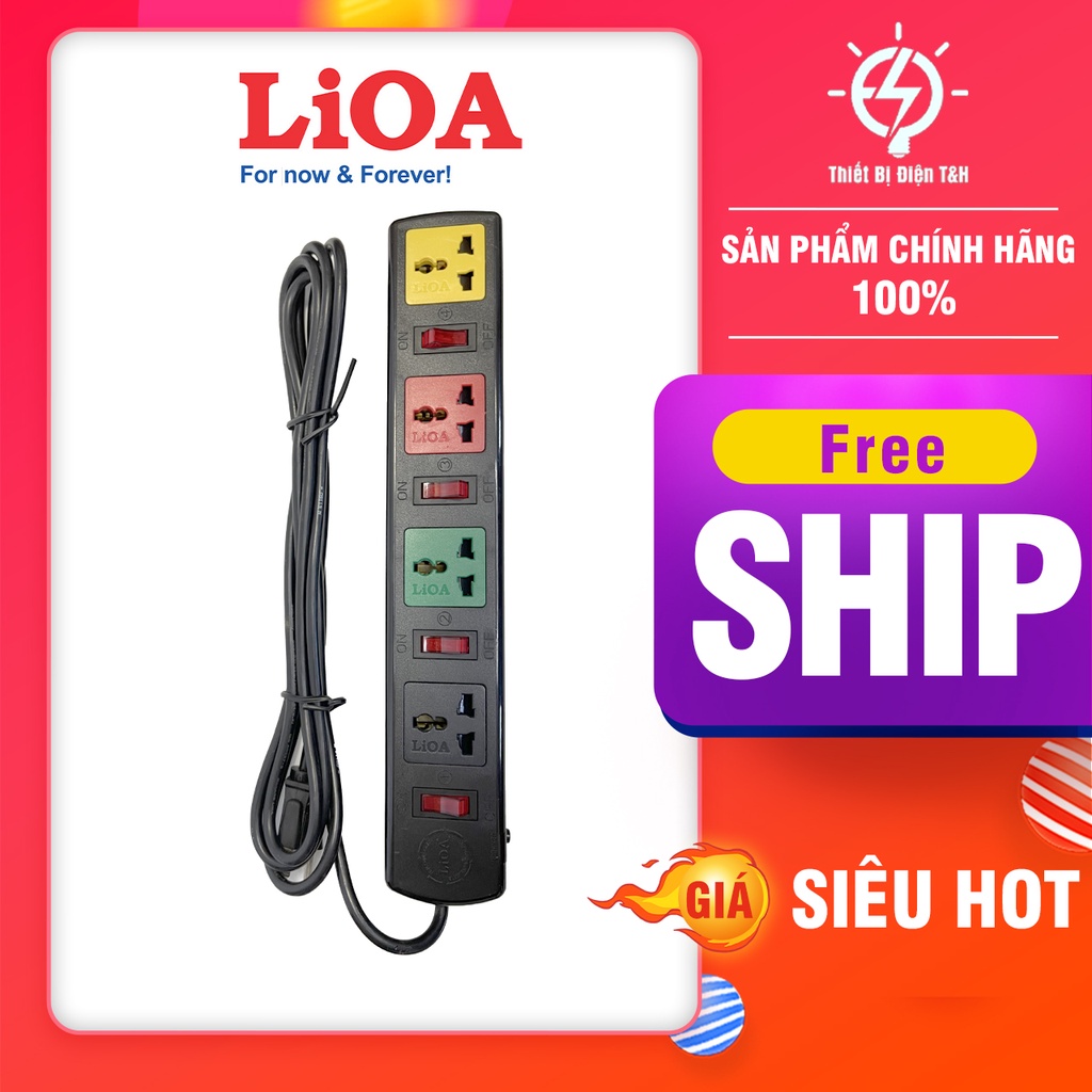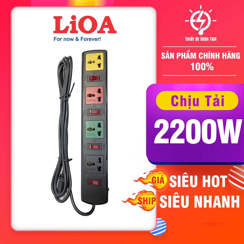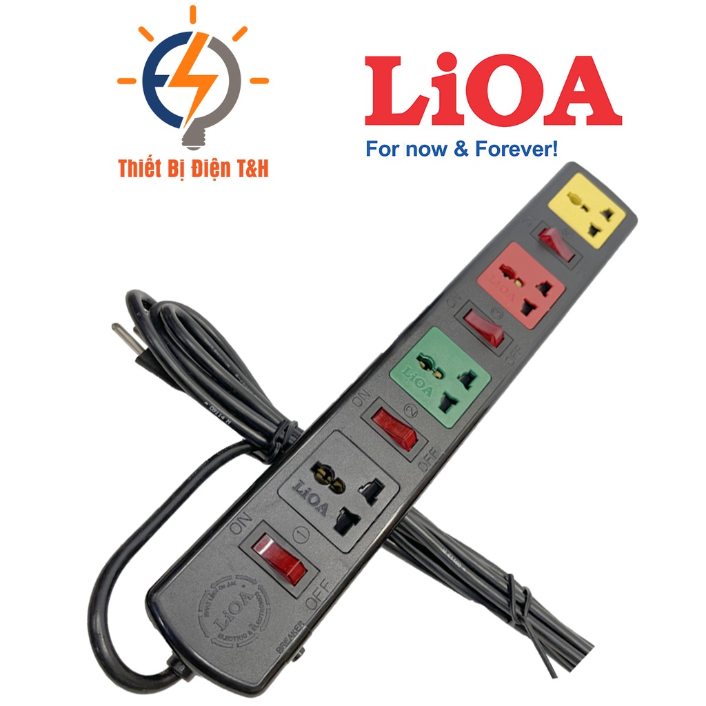 Thiết Bị Điện Gia Dụng > Mạch điện & Phụ tùng > Ổ cắm điện & Dây nối || Ổ cắm điện đa năng LIOA, 2200W, 4 ổ cắm, 4 công tắc, dây dài 3M, 5M, 4DOF32N - 4DOF52N - Thiết Bị Điện T&HCòn hàng