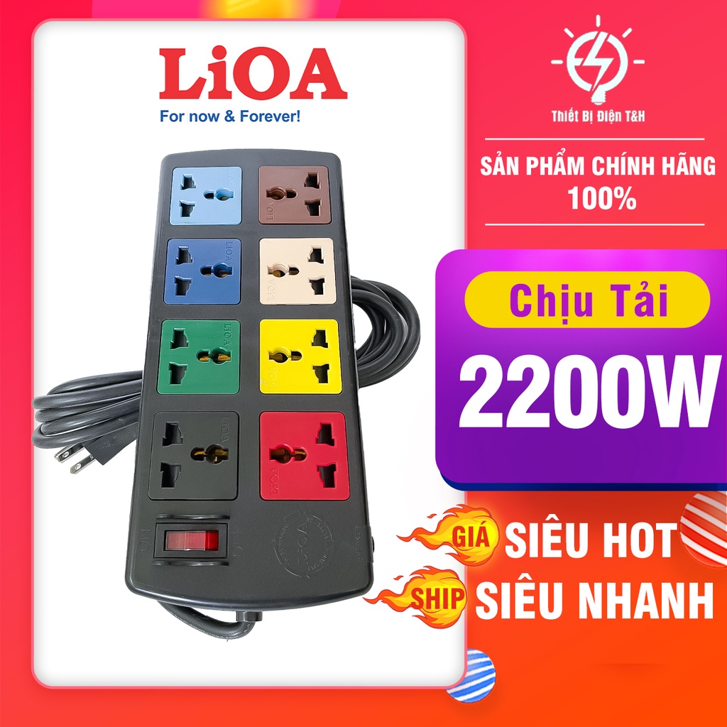 Thiết Bị Điện Gia Dụng > Mạch điện & Phụ tùng > Ổ cắm điện & Dây nối || Ổ cắm điện đa năng LIOA, 2200W, 8 ổ cắm, 1 công tắc, dây dài 3M, 5M, 8D32N - 8D52NCòn hàng