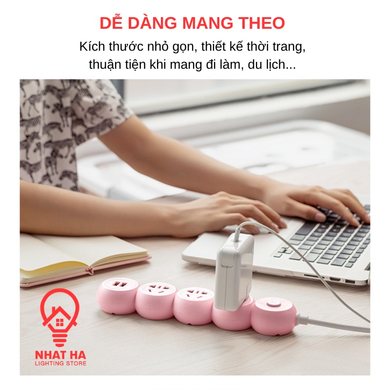 Ổ Cắm Điện Đa Năng Màu Hồng Dễ Thương Nhật Hạ 2 Cổng USB Có Công Tắc, Dây Dài 3m Gắn Tường Tiện Lợi OD-3399