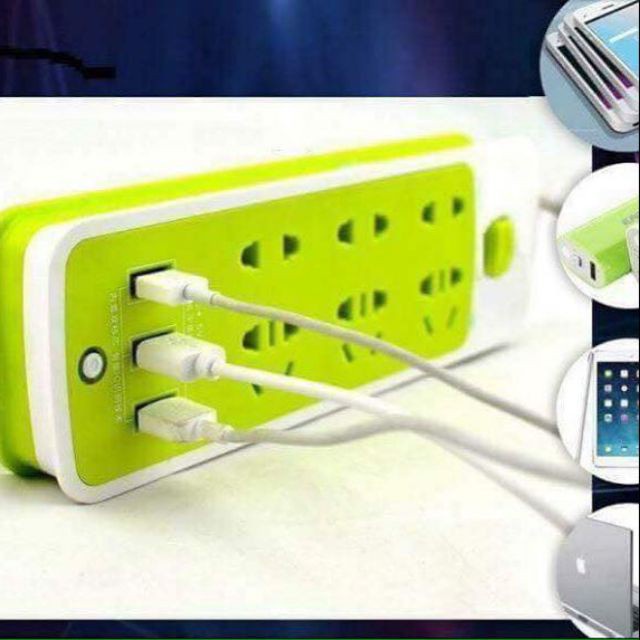 1 Mô tả sản phẩmỔ cắm điện xanh đa năng là ổ cắm điện có rất có thể sử dụng cùng 1 lúc nhiều thứ đồ dùng, có thể cắm sạc điện thoại cắm dây sạc điện thoai,,,Ổ Điện Đa Năng Chống Giật 3 Cổng USB Và 6 Ổ Cắm iCART ổ cắm điện tiện lợi cho mọi gia đình. Với chiếc ổ điện này giờ đây bạn sẽ không phải lo thiếu ổ cắm điện cho thiết bị điện tử trong gia đình. Ngoài ra sản phẩm còn thiết kế thêm cổng USB cao cấp có đầu ra 5W – 2,A cho người dùng sạc điện cho các thiết bị nhanh hơn, tiện lợi hơn.
