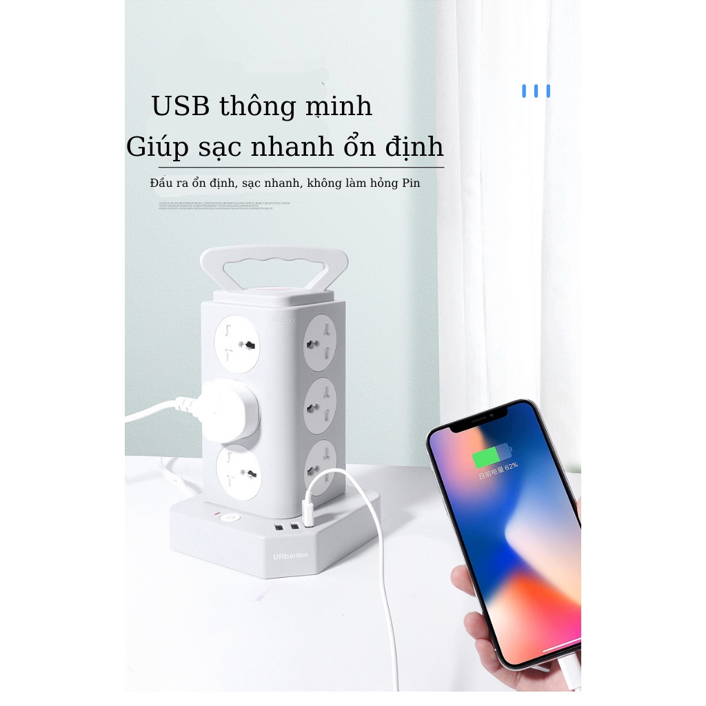 Thiết Bị Điện Gia Dụng > Mạch điện & Phụ tùng > Ổ cắm điện & Dây nối || Ổ cắm điện đa năng nhiều lỗ cắm tích hợp cổng USB sạc nhanh hình tháp an toàn chống giật, cháy nổ, chịu tải 2500wCòn hàng