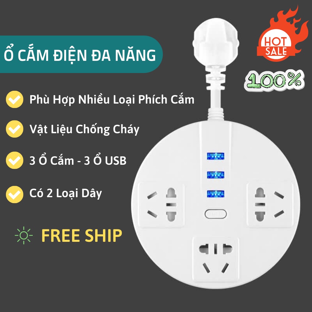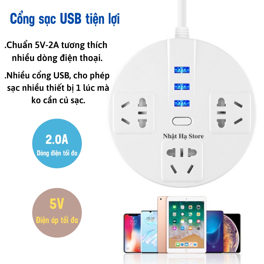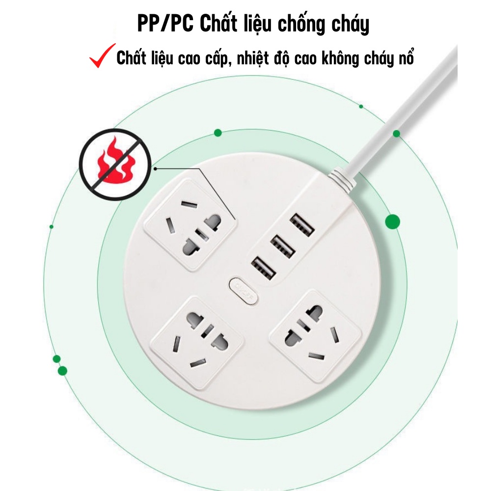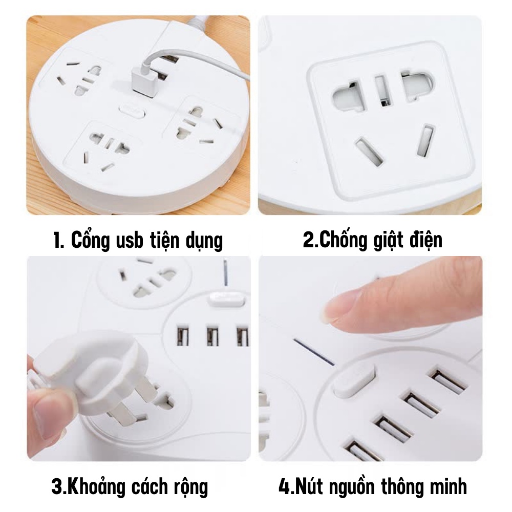 Ổ Cắm Điện Đa Năng, Ổ Cắm USB Hình Tròn Sáng Tạo Đơn Giản An Toàn Chống Giật ATILA SHOP