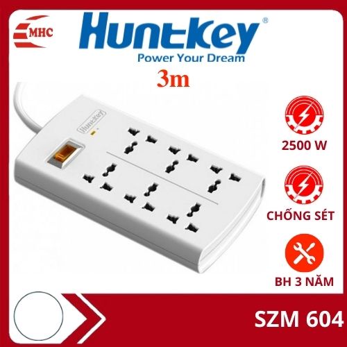 Thiết Bị Điện Gia Dụng > Mạch điện & Phụ tùng > Ổ cắm điện & Dây nối || Ổ cắm điện đa năng, ổ điện thông minh Huntkey SZM604 6 ổ chống sét, có đèn báoCòn hàng