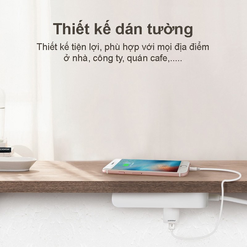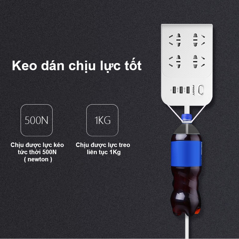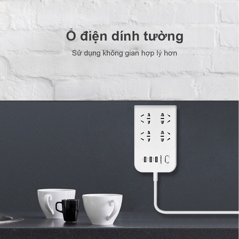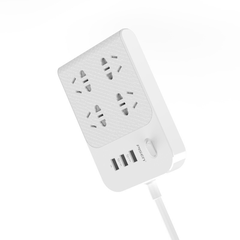 Ổ cắm điện Pisen BH-43 ( Ổ dính, 4xAC, 3xUSB ) - 3 USB (1x 1A + 2x 2.4A Smart) | + 4 AC✅ Nhà sản xuất: PISEN GROUP