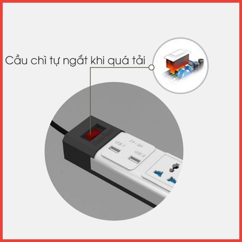 Ổ Cắm Điện Đa Năng Rạng Đông 2 Cổng USB, Sạc Nhanh 5V-2A, Ổ Điện Chịu Tải 2500W, Tích Hợp Rơ Le Tự Ngắt, Dây Nối Dài 3M