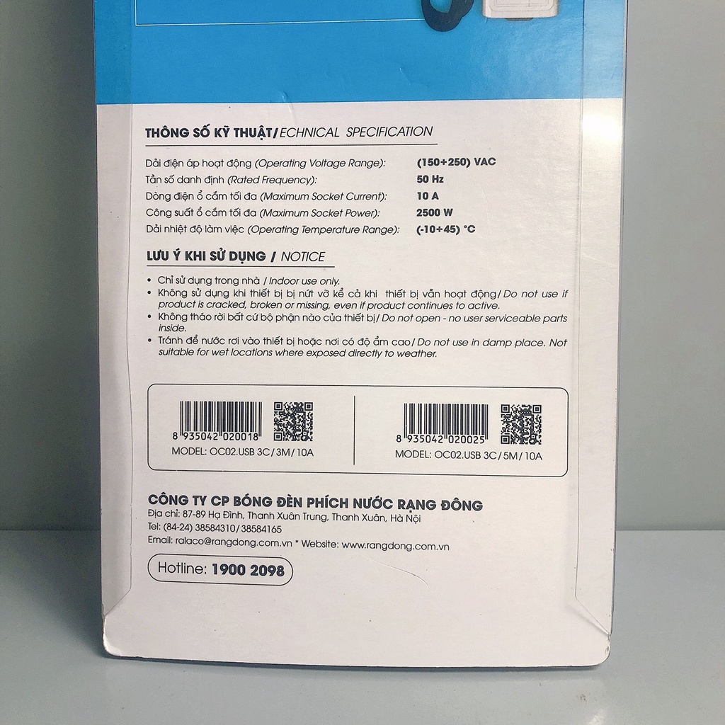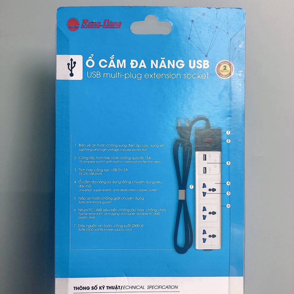 Ổ Cắm Điện Đa Năng Rạng Đông 2 Cổng USB, Sạc Nhanh 5V-2A, Ổ Điện Chịu Tải 2500W, Tích Hợp Rơ Le Tự Ngắt, Dây Nối Dài 3M🔰 LƯU Ý KHI SỬ DỤNG: