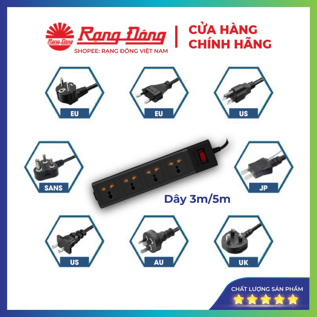 Thiết Bị Điện Gia Dụng > Mạch điện & Phụ tùng > Ổ cắm điện & Dây nối || Ổ cắm điện đa năng Rạng Đông 3m, 5m chịu tải cao, Model: OC02 4C/3M/10ACòn hàng