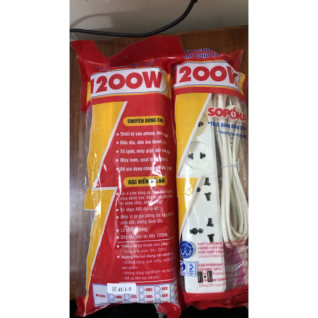 Thiết Bị Điện Gia Dụng > Mạch điện & Phụ tùng > Ổ cắm điện & Dây nối || Ổ cắm điện đa năng SOPOKA Có cổng USB 27W 4U1 an toàn tiện lợiCòn hàng