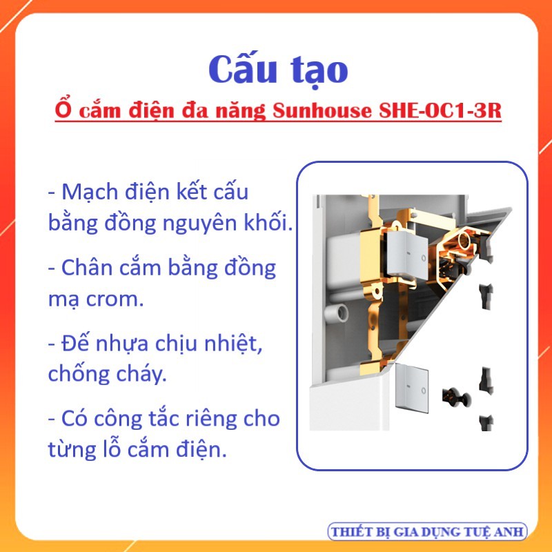 MÔ TẢ CHI TIẾT Ổ cắm điện đa năng Sunhouse SHE-OC1-3R
