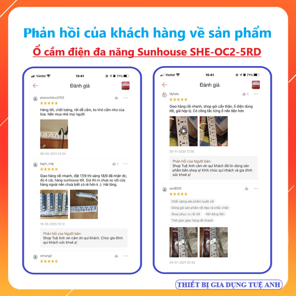 Thiết Bị Điện Gia Dụng > Mạch điện & Phụ tùng > Ổ cắm điện & Dây nối || Ổ cắm điện đa năng Sunhouse SHE-OC2-5RD - Ổ cắm điện 5 lỗ - Dây dài 4,5m, có công tắc bật tắt riêng cho từng vị tríCòn hàng