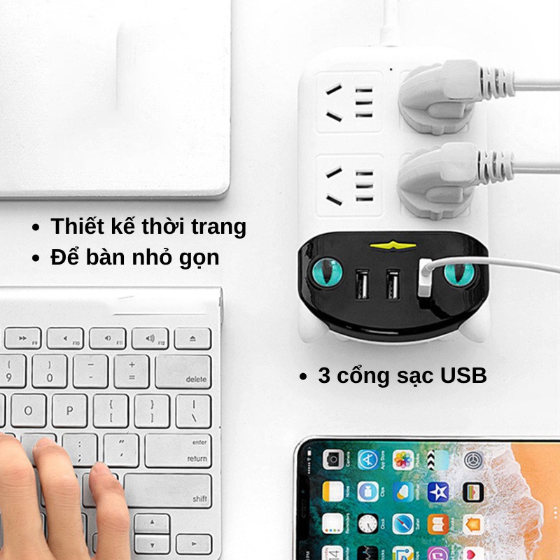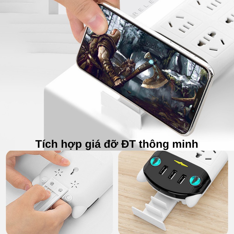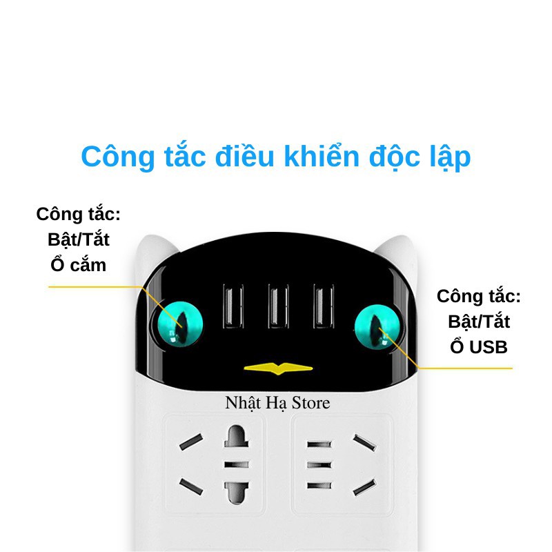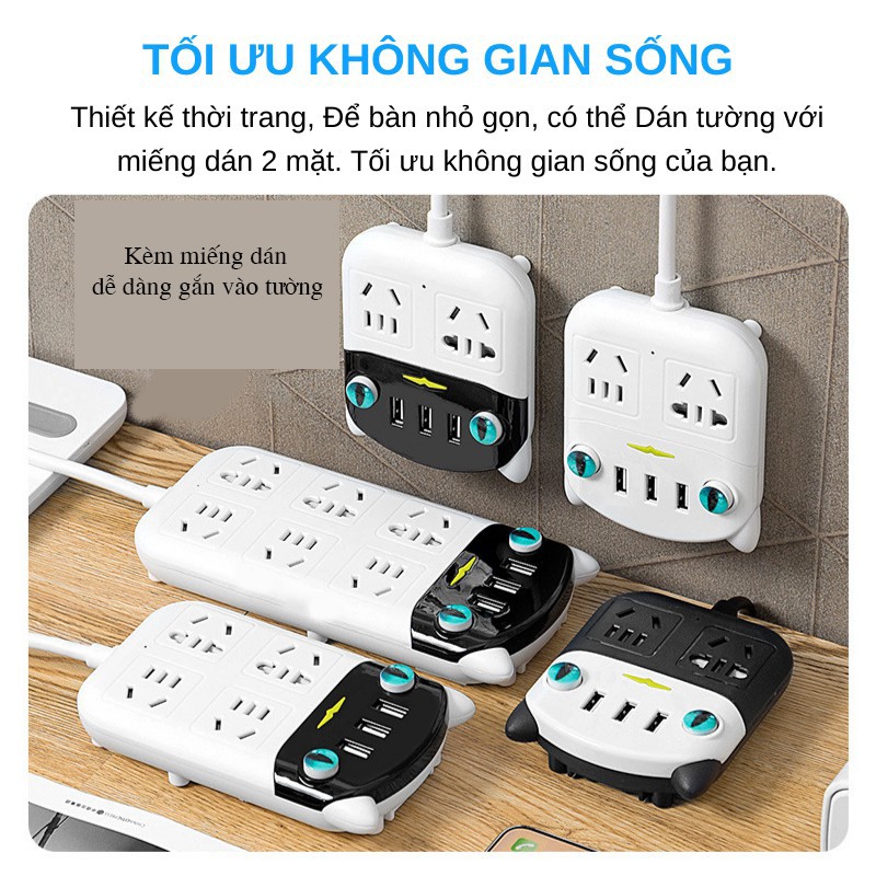 Ổ cắm điện đa năng thông minh 3 cổng USB 5v sạc nhanh 2,3,4 ổ chịu tải 2500W dây nối dài 1,8m OCD02