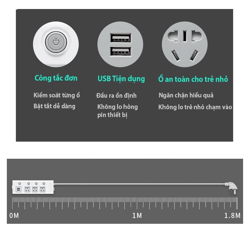 Ổ cắm điện đa năng thông minh 2 cổng USB 5v sạc nhanh 2,3,4 ổ chịu tải 2500W, tiết kiệm 30 kilowatt giờ dây nối 1,8mỨNG DỤNG CỦA Ổ CẮM ĐIỆN: