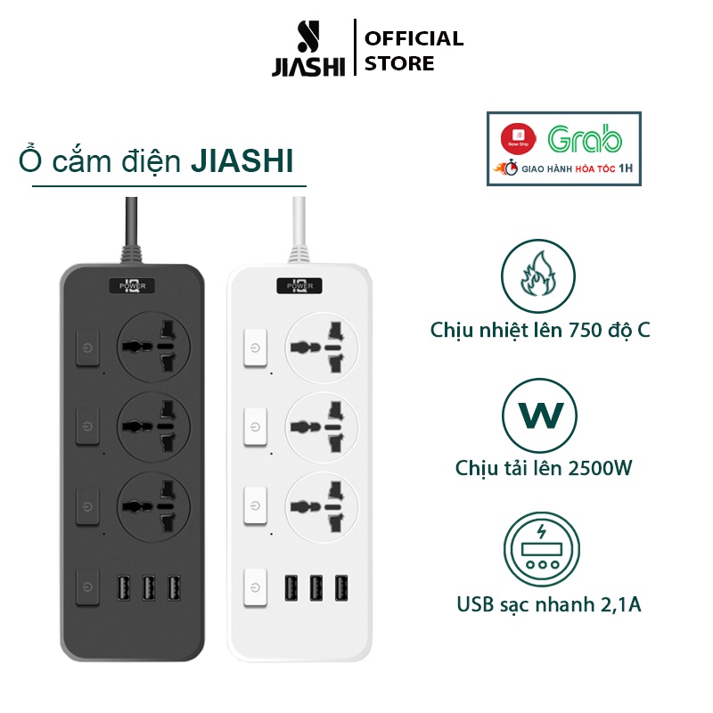 Thiết Bị Điện Gia Dụng > Mạch điện & Phụ tùng > Ổ cắm điện & Dây nối || Ổ Cắm Điện Đa Năng Thông Minh Jiashi 3 Cổng USB Sạc Nhanh 5V-2.1A Công Suất 2500W Nhựa PP Chống Cháy Dây Nối 1,8M OCD04Còn hàng