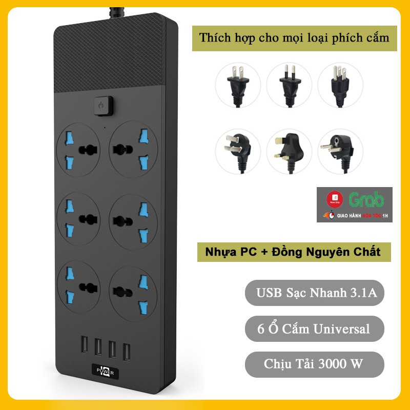 Thiết Bị Điện Gia Dụng > Mạch điện & Phụ tùng > Ổ cắm điện & Dây nối || Ổ Cắm Điện Đa Năng Thông Minh 4 Cổng USB Sạc Nhanh 5V-3.1A Công Suất 3000W Vật Liệu Chống Cháy Dây Nối Dài 1,8M OCD03Còn hàng