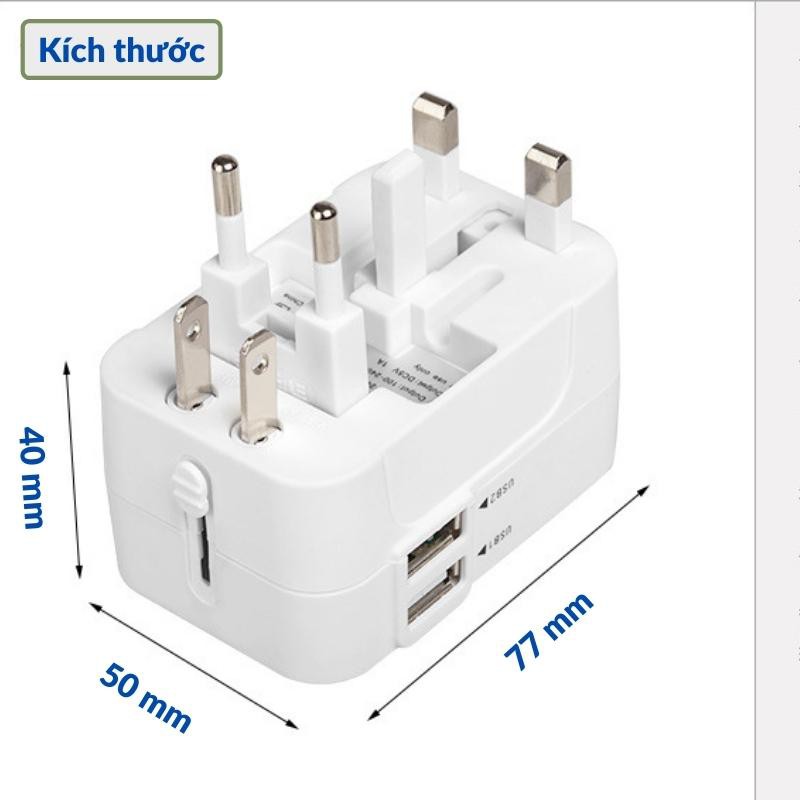 - Loại phích cắm: Được tích hợp tiêu chuẩn Mỹ, tiêu chuẩn Úc, tiêu chuẩn Anh, tiêu chuẩn Châu Âu, Châu Á.