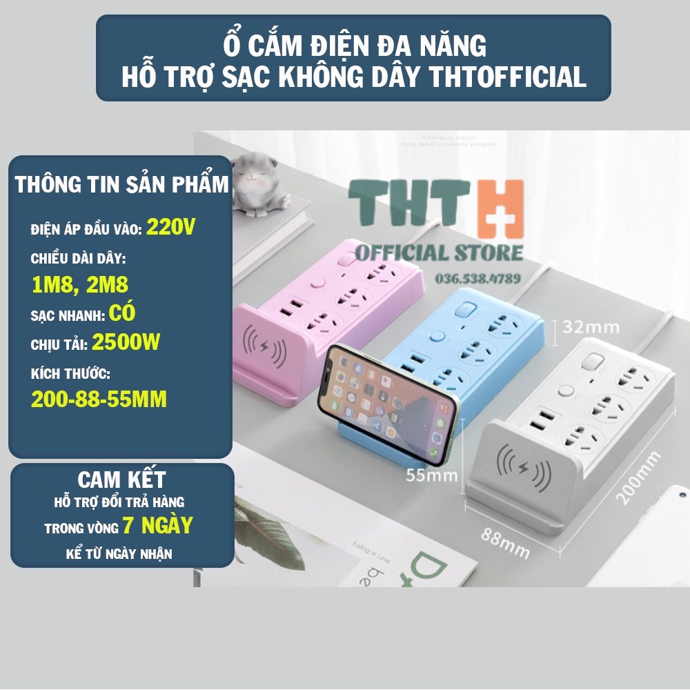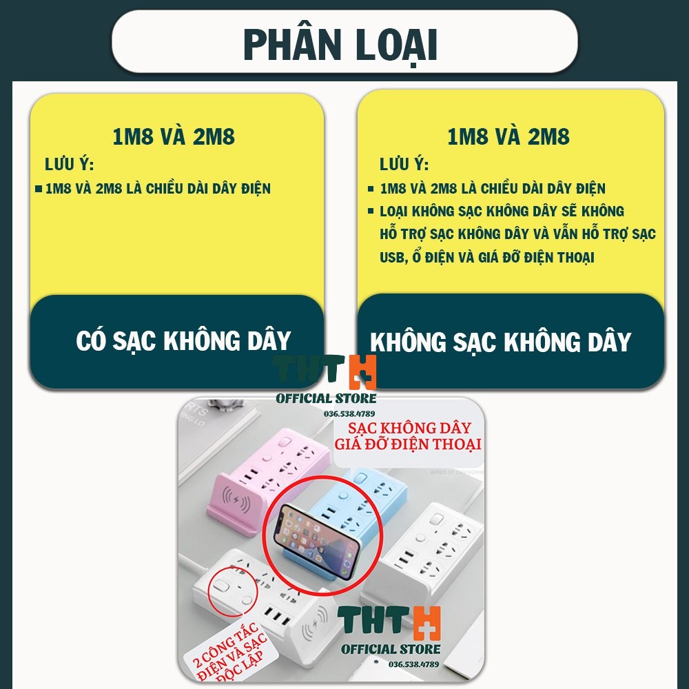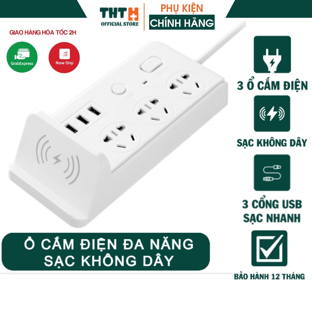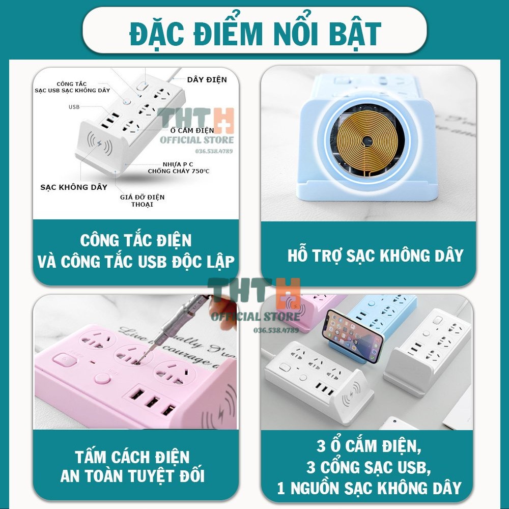 Ổ Cắm Điện Đa Năng Thông Minh Sạc Không Dây 3 Cổng USB Sạc Nhanh, Ổ Chịu Tải 2500W, Tiết Kiệm Điện, Chống Cháy Nổ