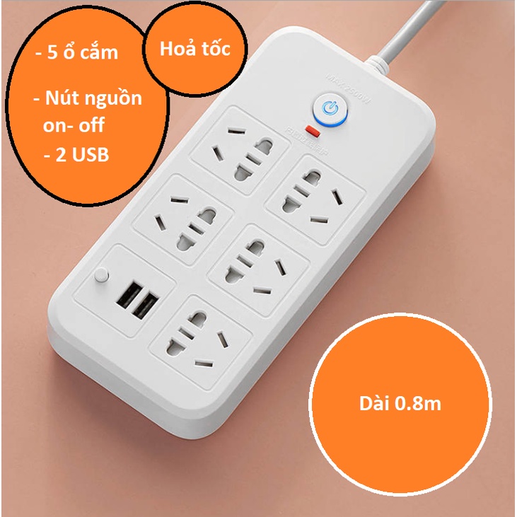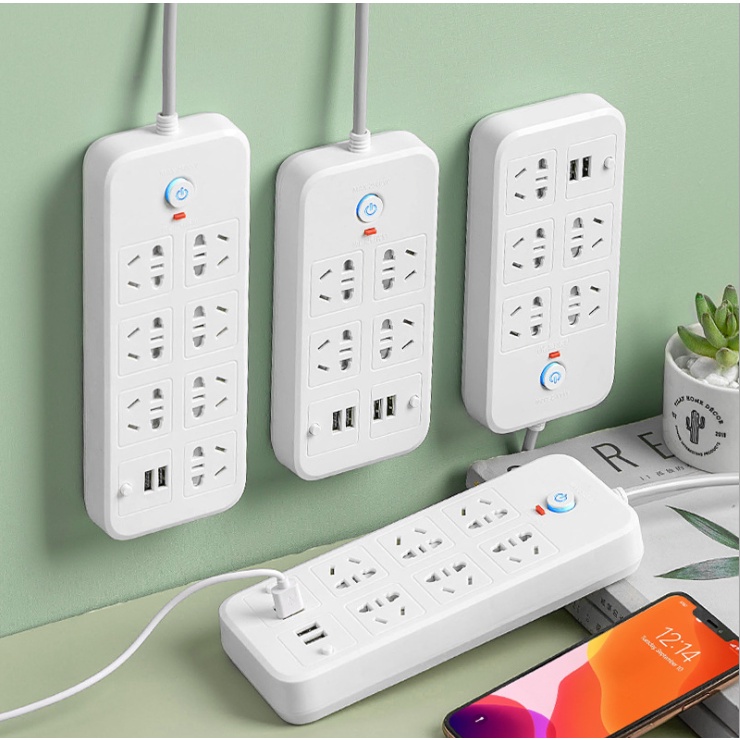Thiết Bị Điện Gia Dụng > Mạch điện & Phụ tùng > Ổ cắm điện & Dây nối || Ổ cắm điện đa năng thông minh 2 cổng USB 5v sạc nhanh, ổ chịu tải 2500W, tiết kiệm 30 kilowatt giờ dây nối 2,8mCòn hàng