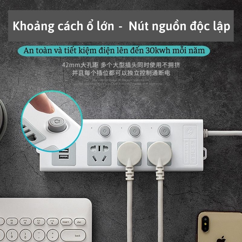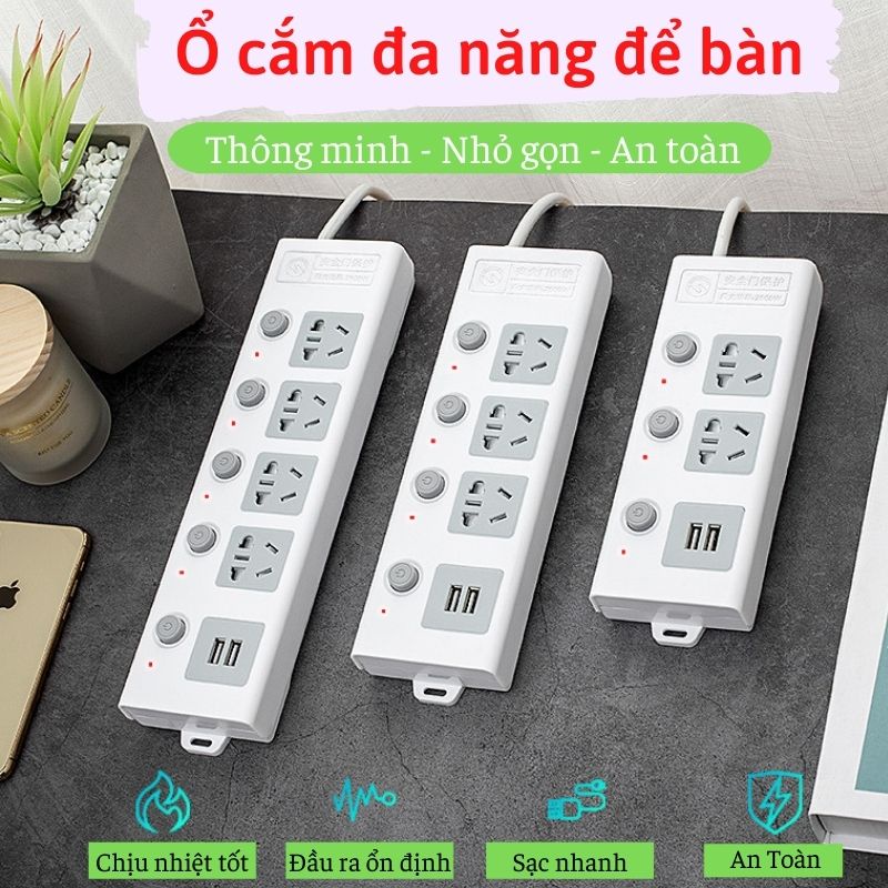 Ổ cắm điện đa năng thông minh 2 cổng USB 5v sạc nhanh 2,3,4 ổ chịu tải 2500W, tiết kiệm 30 kilowatt giờ dây nối 2,5m1. Ứng dụng của Ổ CẮM ĐIỆN: