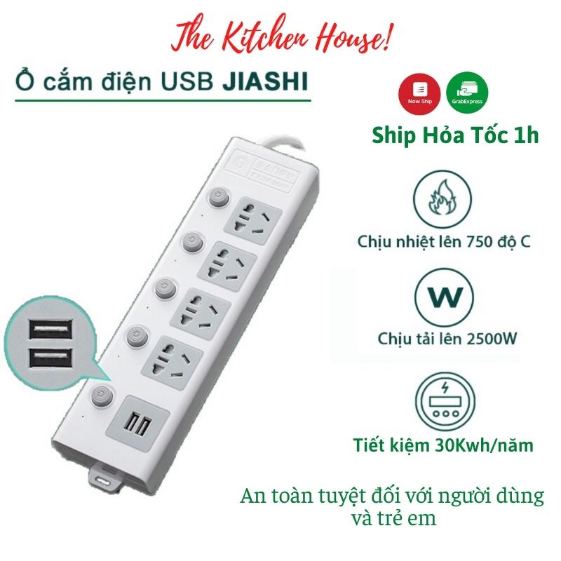Thiết Bị Điện Gia Dụng > Mạch điện & Phụ tùng > Ổ cắm điện & Dây nối || Ổ cắm điện đa năng thông minh 2 cổng USB 5v sạc nhanh, chịu tải 2500w an toàn cao dây dài 2,5m The Kitchen HouseCòn hàng