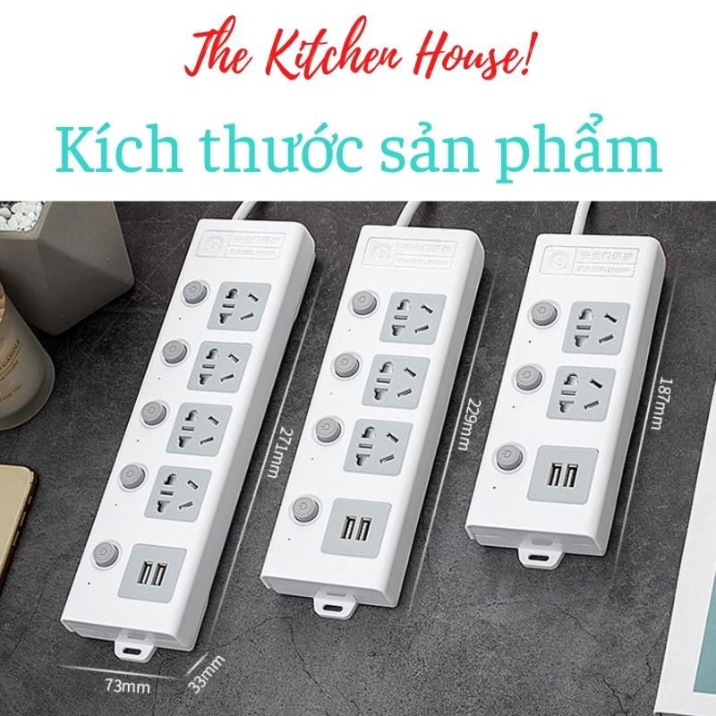 Ổ cắm điện đa năng thông minh 2 cổng USB 5v sạc nhanh, chịu tải 2500w an toàn cao dây dài 2,5m The Kitchen House