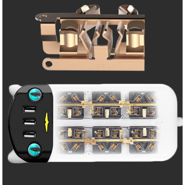 ✔ 3 Ổ Cắm USB chuẩn sạc nhanh 5V-2A cho phép sạc nhiều thiết bị 1 lúc mà ko cần củ sạc.