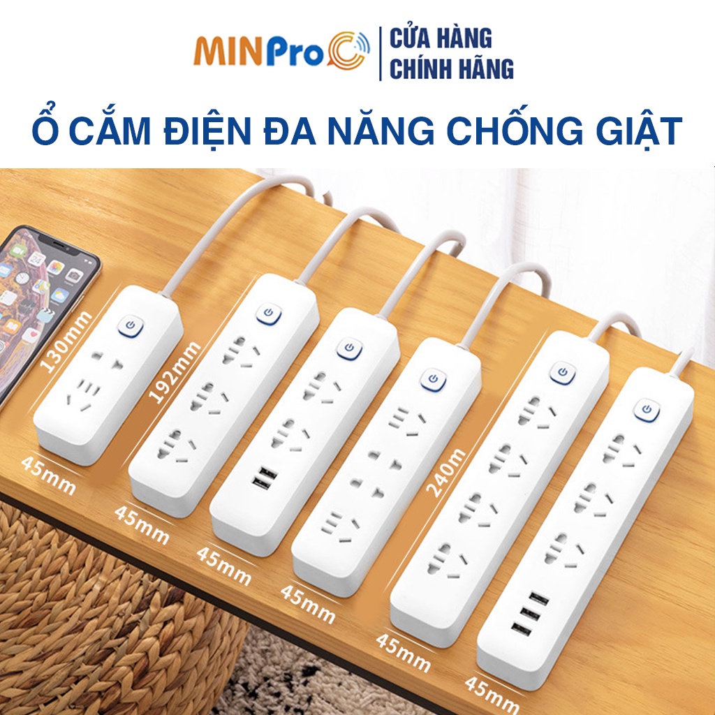 Ổ cắm điện đa năng thông minh MINPRO chống giật cao cấp, có công tắc, nhiều lỗ USB đa năng sạc đt xiaomi