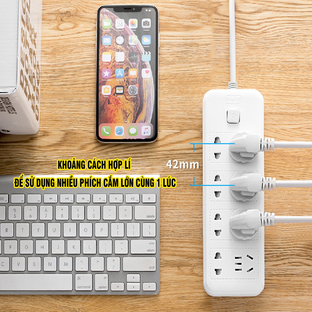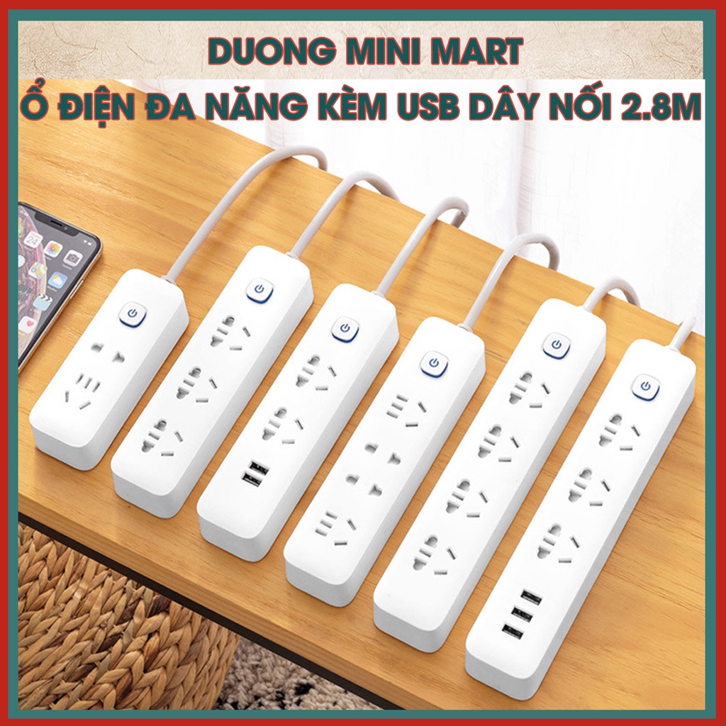Thiết Bị Điện Gia Dụng > Mạch điện & Phụ tùng > Ổ cắm điện & Dây nối || Ổ Cắm Điện Đa Năng Tích Hợp Cổng USB, Ổ Điện Chịu Tải 2500W Dây Nối Dài 2.8m Công Tắc Có Nắp Bịt An Toàn Chống GiậtCòn hàng