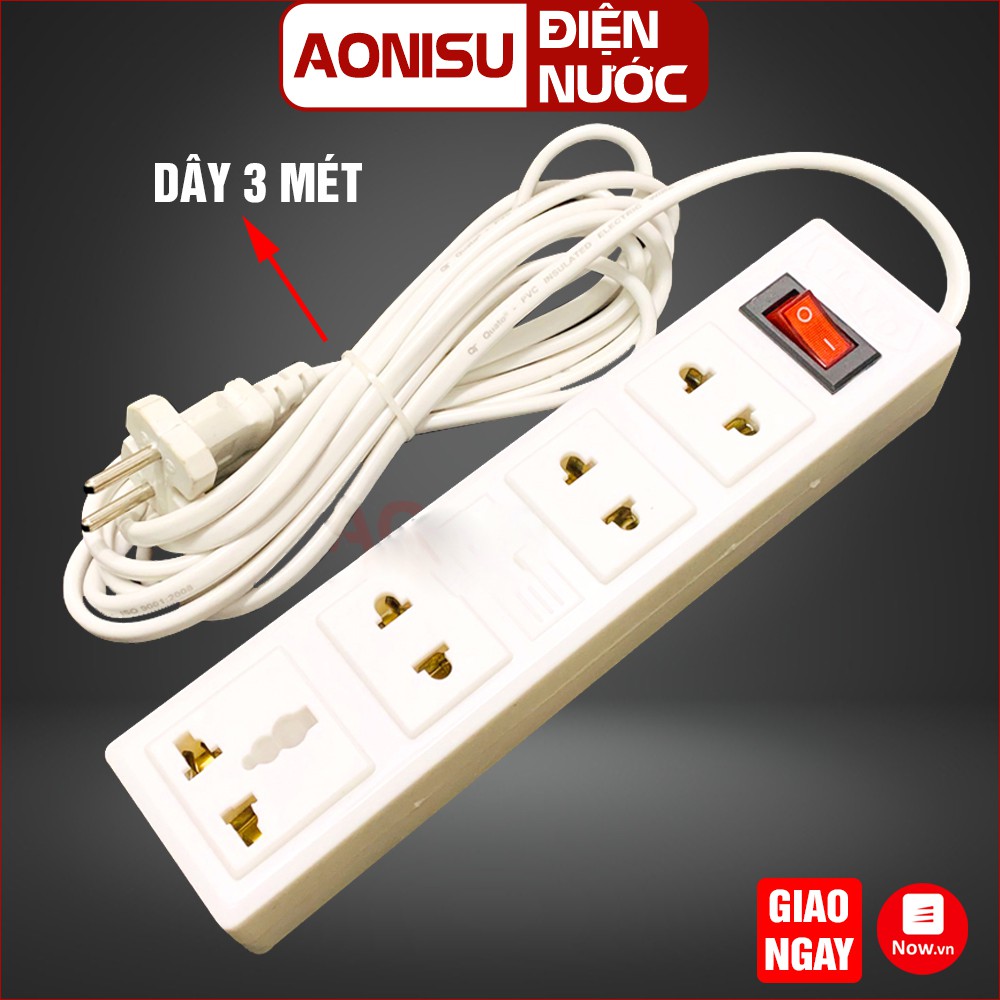 Ổ Cắm Điện Đa Năng TONI 4 CỔNG, Dây 3 Mét, Có Công Tắc An Toàn - Ổ Điện Thông Minh AONISU